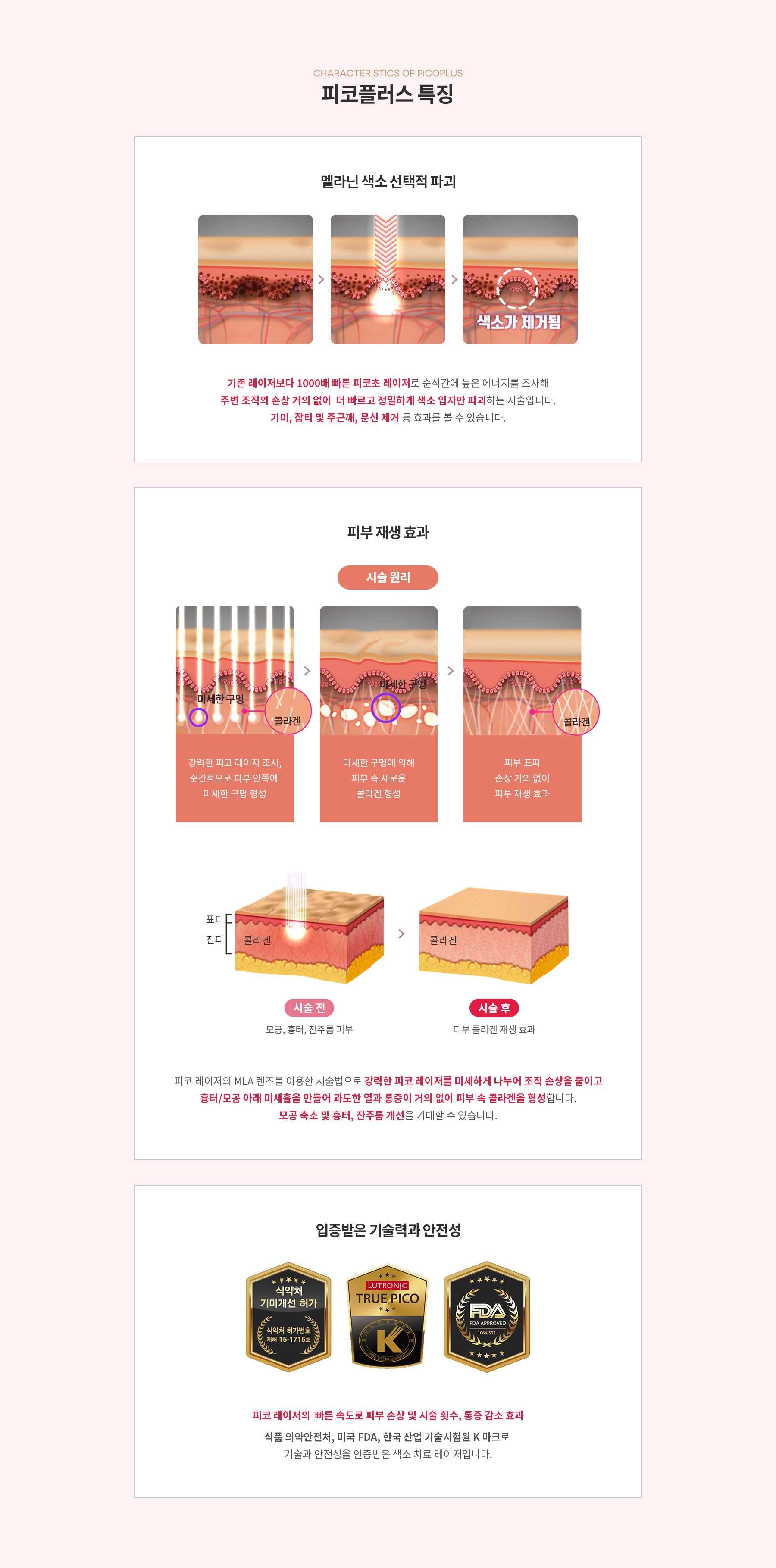 1 개인의 피부상태에 따라 1~2주 간격으로 진행되며, 5~10회 이상의 시술을 통해 효과를 볼 수 있습니다.